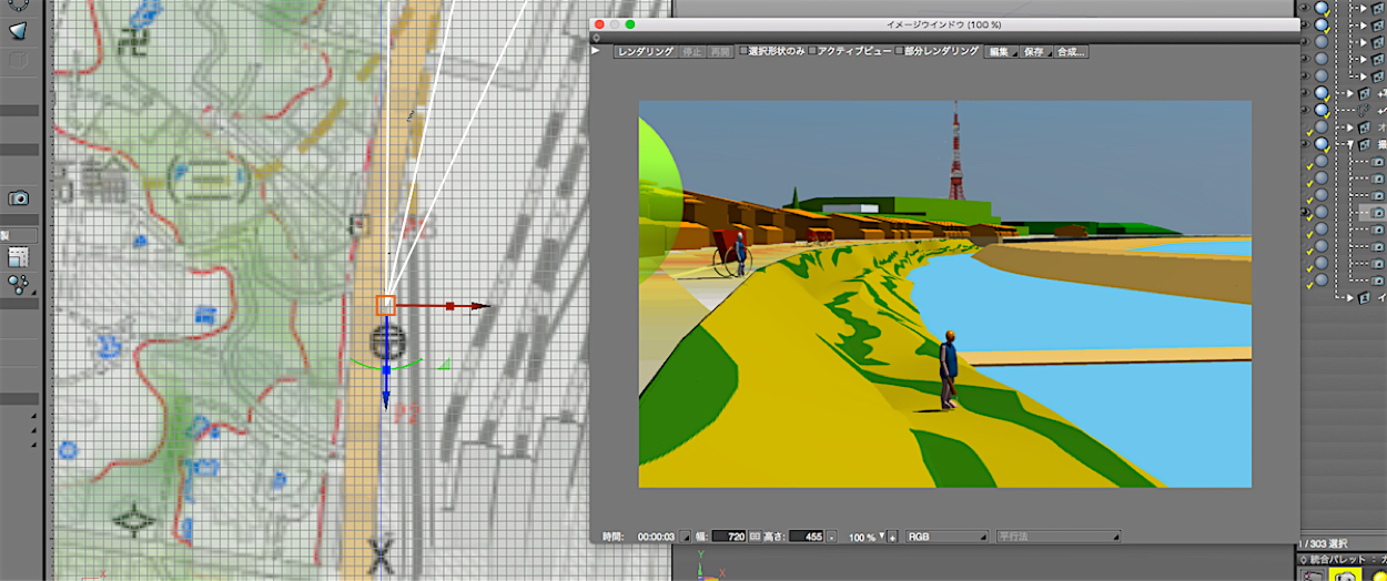 今回もあらかじめブラウザに現在の地図をテンプレートとして貼り付けてあるので、カメラマンXが写真機を据えた場所は、既に画面上の地図に示されている。