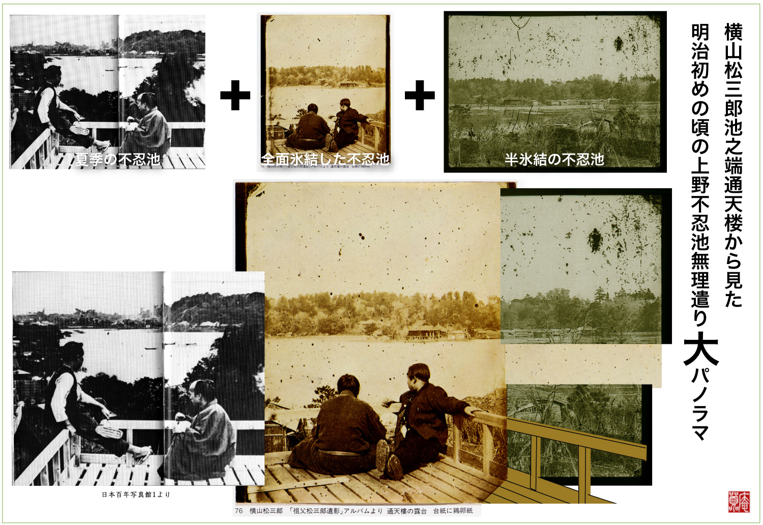 前回イケメン写真師横山松三郎の、不忍池を望む写真のはなしで、上野のお山の木々の白いのは「サクラか?」ととぼけて見ましたが、ブーイングもなく残念でした。サクラではなく昨夜の雪が木々の枝に残っているのが正解でした。
