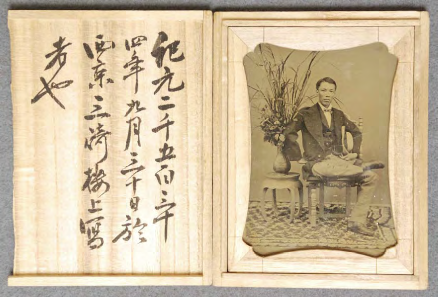 木箱蓋上書「奉呈 母上様 恒殿 済殿江」同裏書「紀元二千五百三十四年九月三十日於 京都府写之愚像也」
