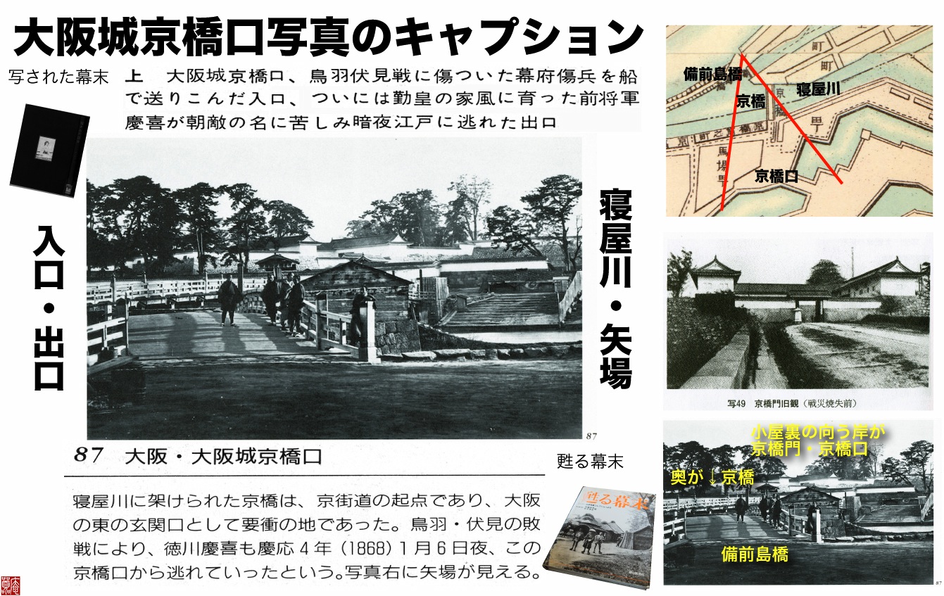 これらの「大阪城京橋口」写真のキャプションをご覧あれ。これらはともに、間違いでも何でもない。