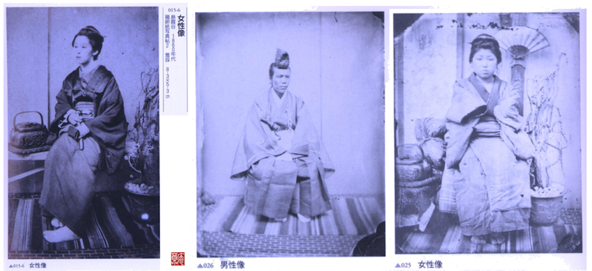 新見・設楽・川村の写真は、川上冬崖ら「開成所」の先生方によって、慶応二年十月以前に京都あるいは大阪で撮られたもので(あるかも知れません)、件の敷物は、川上先生が慶応二年十月江戸に持ち帰り、そのご、開成所に加わった、霞谷さんに「あげた」ものかもしれません。