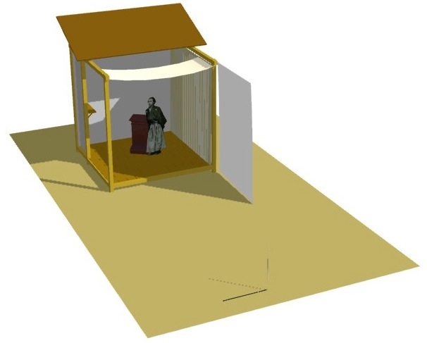 上野彦馬のちっぽけな梁の高さ九尺広さ四畳半の写場が、屋敷の何処に建っていたかは不明だが、例の△太陽光り漏れ3例により、余は北を背に南を向いて建っていることが合理的としている。
