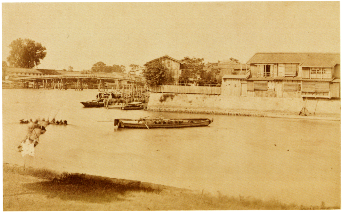 余は大阪の堂島の蔵屋敷のあたりがあやしいと睨んで、大阪の橋の写真を探し、ついに甦る幕末97の「DoJima川」写真に巡り会った。