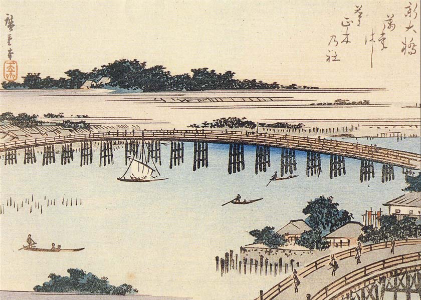 写真を見ても橋のある川はそんなに広くはない。 ネットでひろった「新大橋」の写真と比較して見れば一目瞭然である。