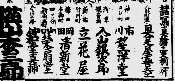 明治十四年の写真関係の番付にも、諸写真絵売捌所の中に、誤植愛嬌ながら桜田本郷町岡田清新堂の名前が見える。