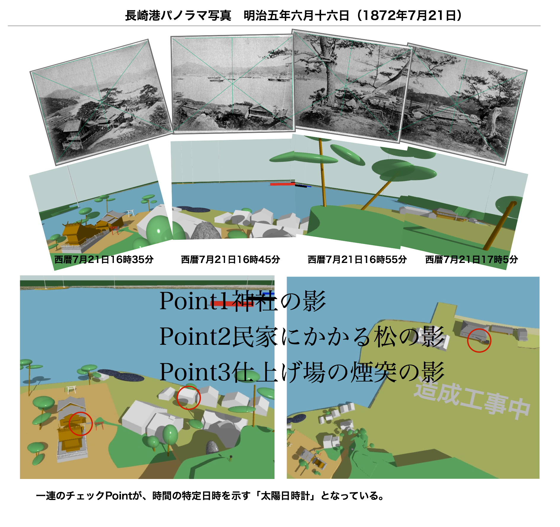 さらに、撮影時間は、恵美須神社の4時35分頃から、45分頃海、55分頃松と軍艦、5分頃造船所と、順次右手にパンをして行った。
