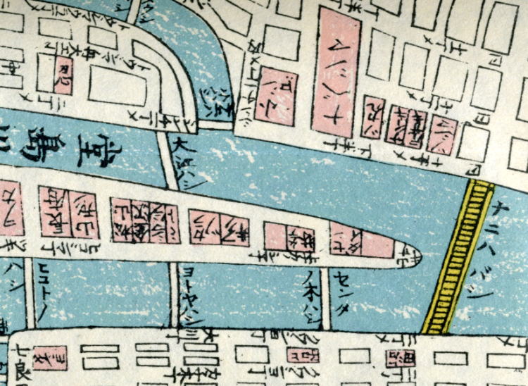 さりながら、大江橋案には手前の川幅や、古地図に載っている「難波小橋」の存在や、川岸の道路などの問題があり、当然自信を持って断定できるよううな状態では無かった。