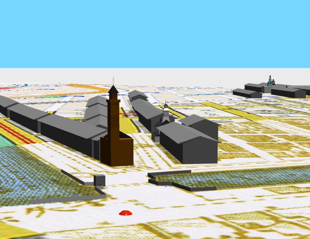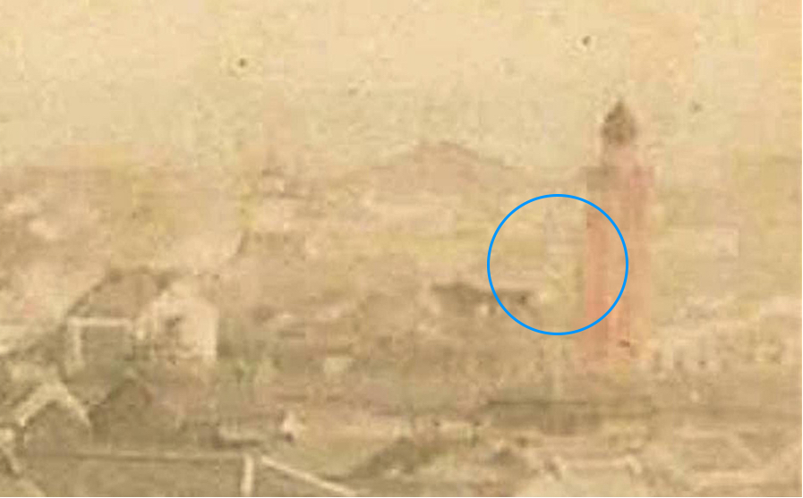 あったあった、赤く色付けされた塔の左方に時計塔らしき建物が有った!!