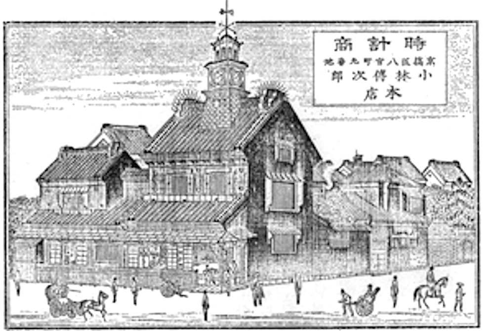 これは、明治十年ごろ竣工とされる、新橋八官町九番地時計商小林傳次郎の小林時計店本店の時計塔である。