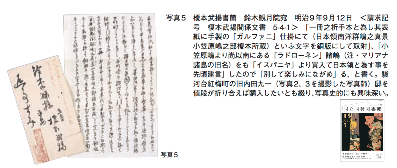 その件は、国会図書館にある明治9年9月の榎本から鈴木観月院への手紙に書き残されている。
